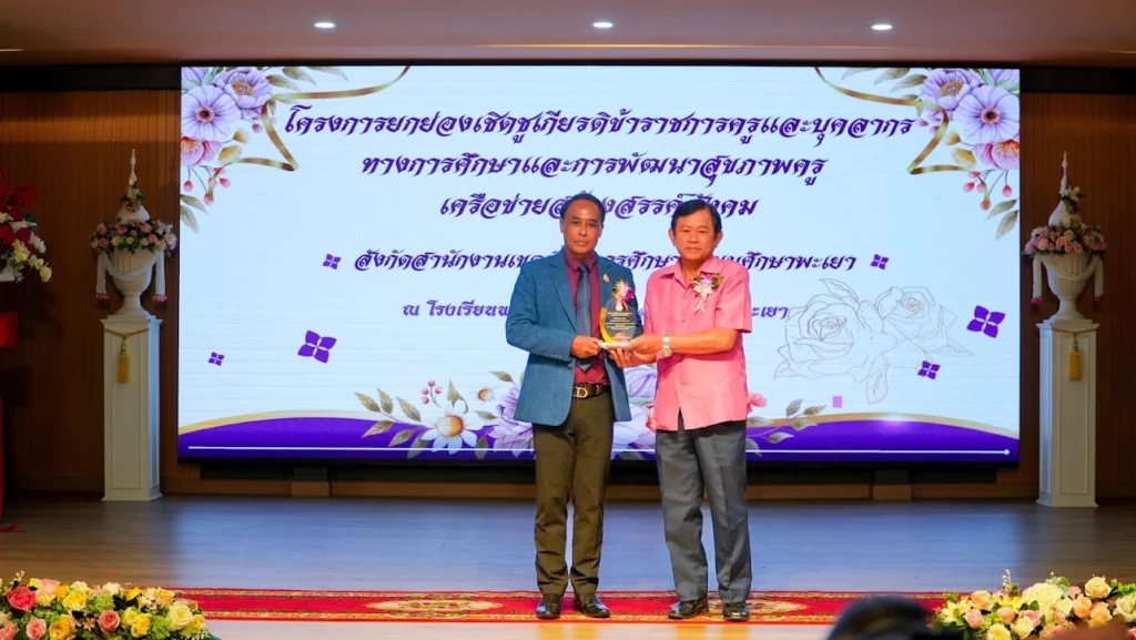 วันที่ ๑๙ กันยายน ๒๕๖๘ นางปณิธี กองแก้ว ผู้อำนวยการโรงเรียนขุนควรวิทยาคม พร้อมด้วยนายวิชาญ ไชยมงคล รองผู้อำนวยการโรงเรียนขุนควรวิทยาคมและหัวหน้ากลุ่มบริหารงานโรงเรียนขุนควรวิทยาคม นำนายสุชาติ ยอดมงคล พนักงานราชการโรงเรียนขุนควรวิทยาคม เข้าร่วมกิจกรรมโครงการยกย่องเชิดชูเกียรติข้าราชการครูและบุคลากรทางการศึกษา และการพัฒนาสุขภาพครู เครือข่ายสร้างสรรค์สังคม สังกัดสำนักงานเขตพื้นที่การศึกษามัธยมศึกษาพะเยา ประจำปี พ.ศ. ๒๕๖๘ โดยมีนายบำรุง สังข์ขาว รองผู้ว่าราชการจังหวัดพะเยา เป็นประธานในพิธี ณ หอประชุมโรงเรียนพะเยาพิทยาคม