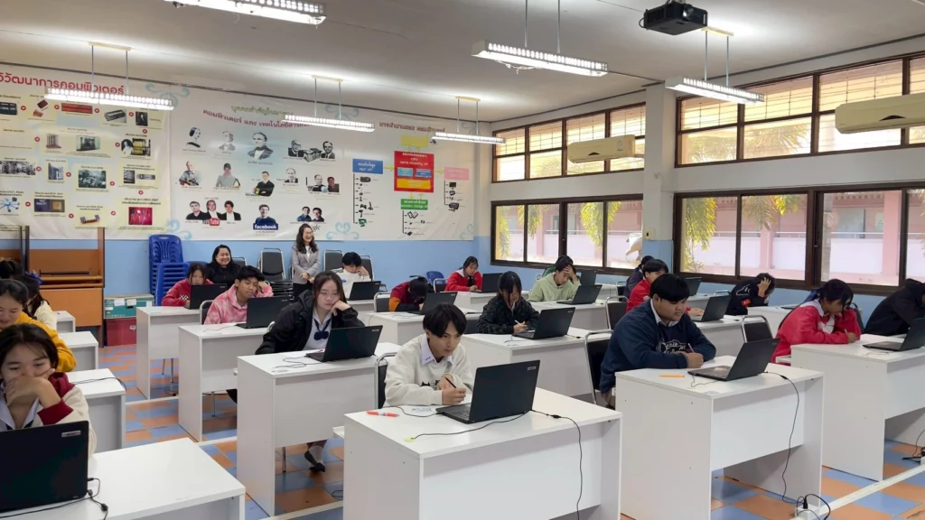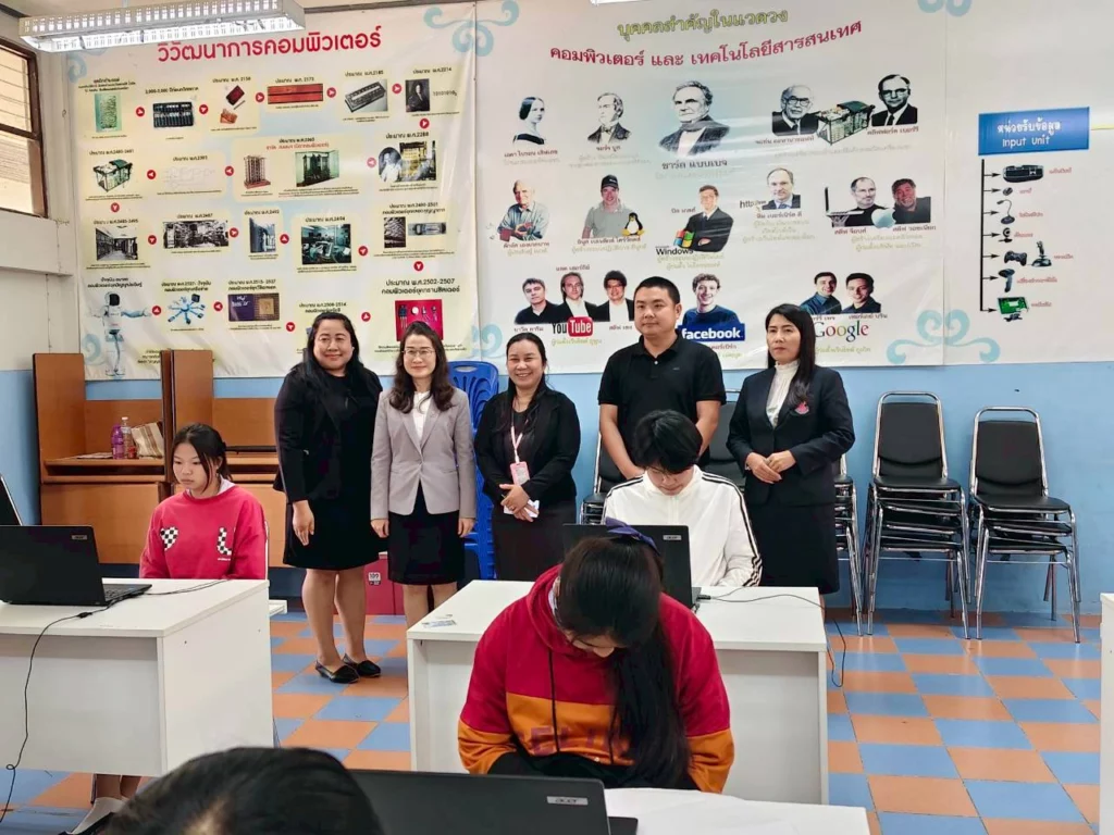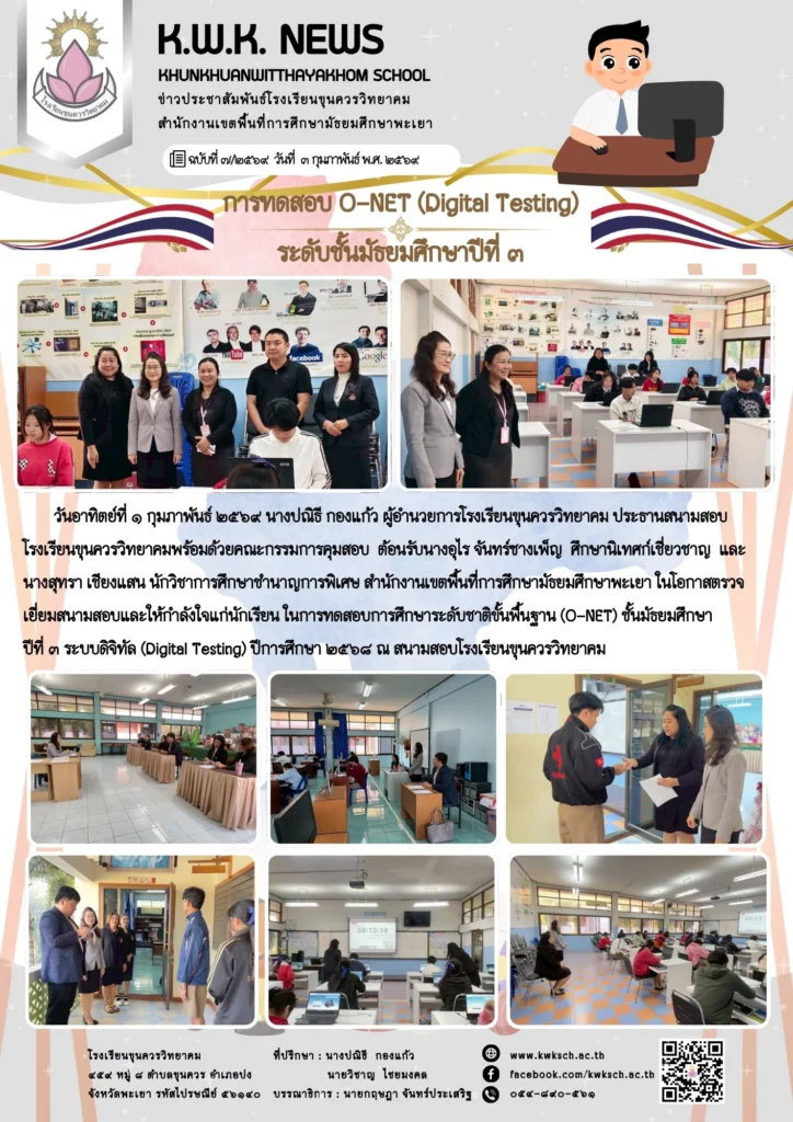 วันอาทิตย์ที่ ๑ กุมภาพันธ์ ๒๕๖๙ นางปณิธี กองแก้ว ผู้อำนวยการโรงเรียนขุนควรวิทยาคม ประธานสนามสอบโรงเรียนขุนควรวิทยาคมพร้อมด้วยคณะกรรมการคุมสอบ ต้อนรับนางอุไร จันทร์ซางเพ็ญ ศึกษานิเทศก์เชี่ยวชาญ และนางสุทรา เชียงแสน นักวิชาการศึกษาชำนาญการพิเศษ สำนักงานเขตพื้นที่การศึกษามัธยมศึกษาพะเยา ในโอกาสตรวจเยี่ยมสนามสอบและให้กำลังใจแก่นักเรียน ในการทดสอบการศึกษาระดับชาติขั้นพื้นฐาน (O-NET) ชั้นมัธยมศึกษาปีที่ ๓ ระบบดิจิทัล (Digital Testing) ปีการศึกษา ๒๕๖๘ ณ สนามสอบโรงเรียนขุนควรวิทยาคม